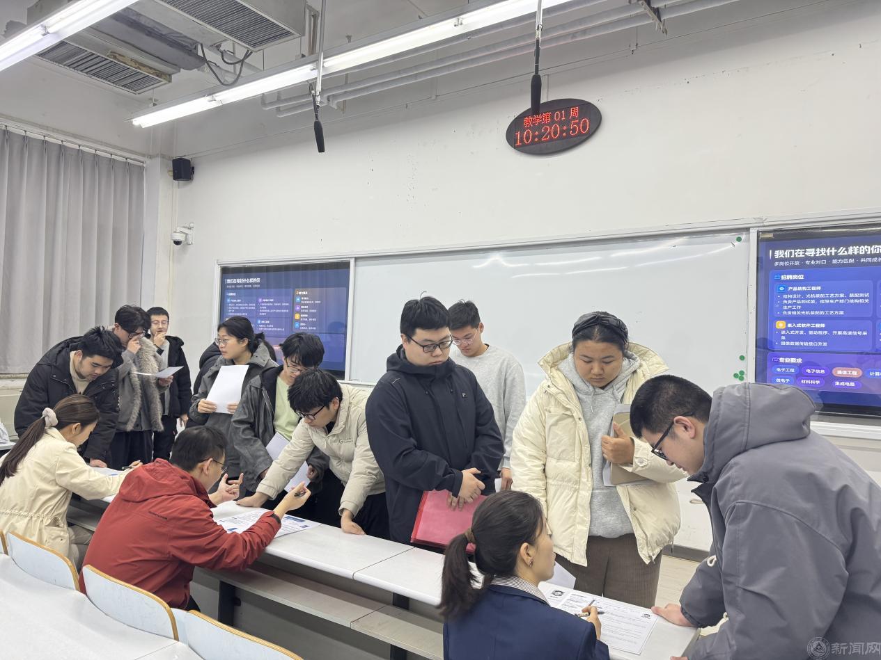 宣讲结束后,公司三位负责人随即开展简历筛选和初级面试,逐一与毕业生进行深入交流,了解学生专业能力与求职意向,为后续招聘工作奠定基础。现场气氛热烈,互动积极。