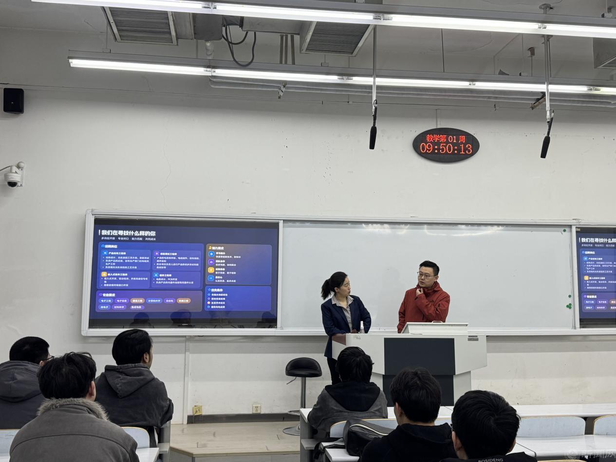 随后,产品研发部负责人张啸辉结合在场毕业生的专业背景,介绍对应的岗位需求与职业发展方向。他从专业与岗位的匹配度出发,详细讲解入职后的工作内容及专业成长路径,帮助毕业生清晰认识行业前景与个人发展空间。人力资源部负责人刘素玲则围绕公司的薪酬体系与员工保障制度进行了补充说明,全面介绍企业为员工提供的薪资待遇与福利保障,进一步增强毕业生的求职信心。
