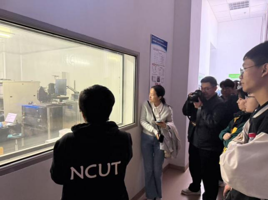 参观tyc7111cc太阳成集团超净实验室“芯片封测智能制造校企协同就业创业创新示范基地”和“集成电路工艺与测试实验室”,介绍晶圆切割、键合等核心技术流程并了解到高端测试设备及前沿研究方向。