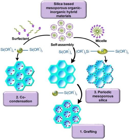 Lowk材料的制备主要的研究目的为:制备出低介电常数/高机械性能的多孔结构薄膜:PMO (周期性多孔二氧化硅)结构;桥连烷基的SiOCH膜;末端甲基-有机硅酸盐OSG薄膜;超配位数苯基桥连结构。